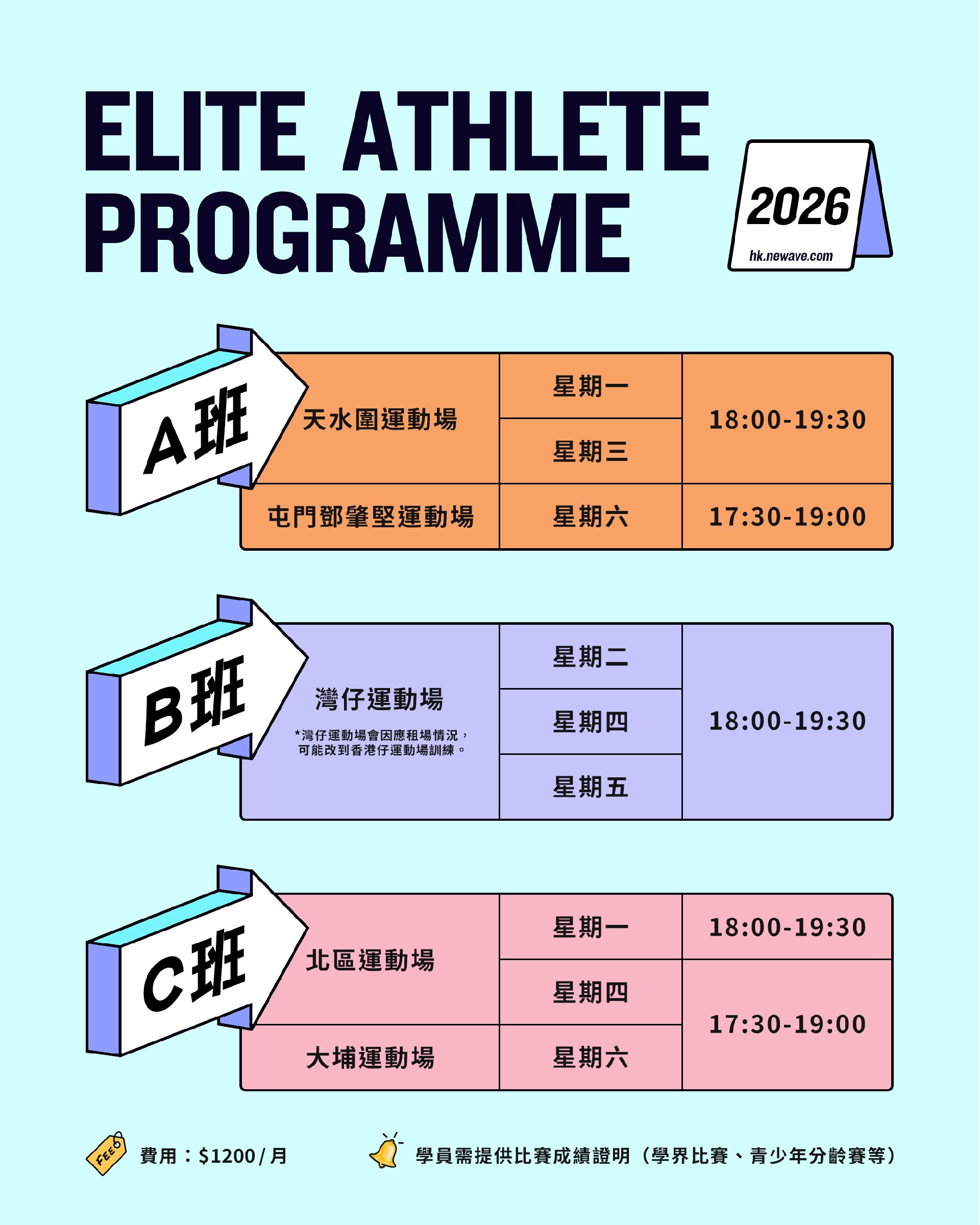 銀行戶口名稱 : NEWAVE ATHLETIC TRAINING CENTRE LIMITED