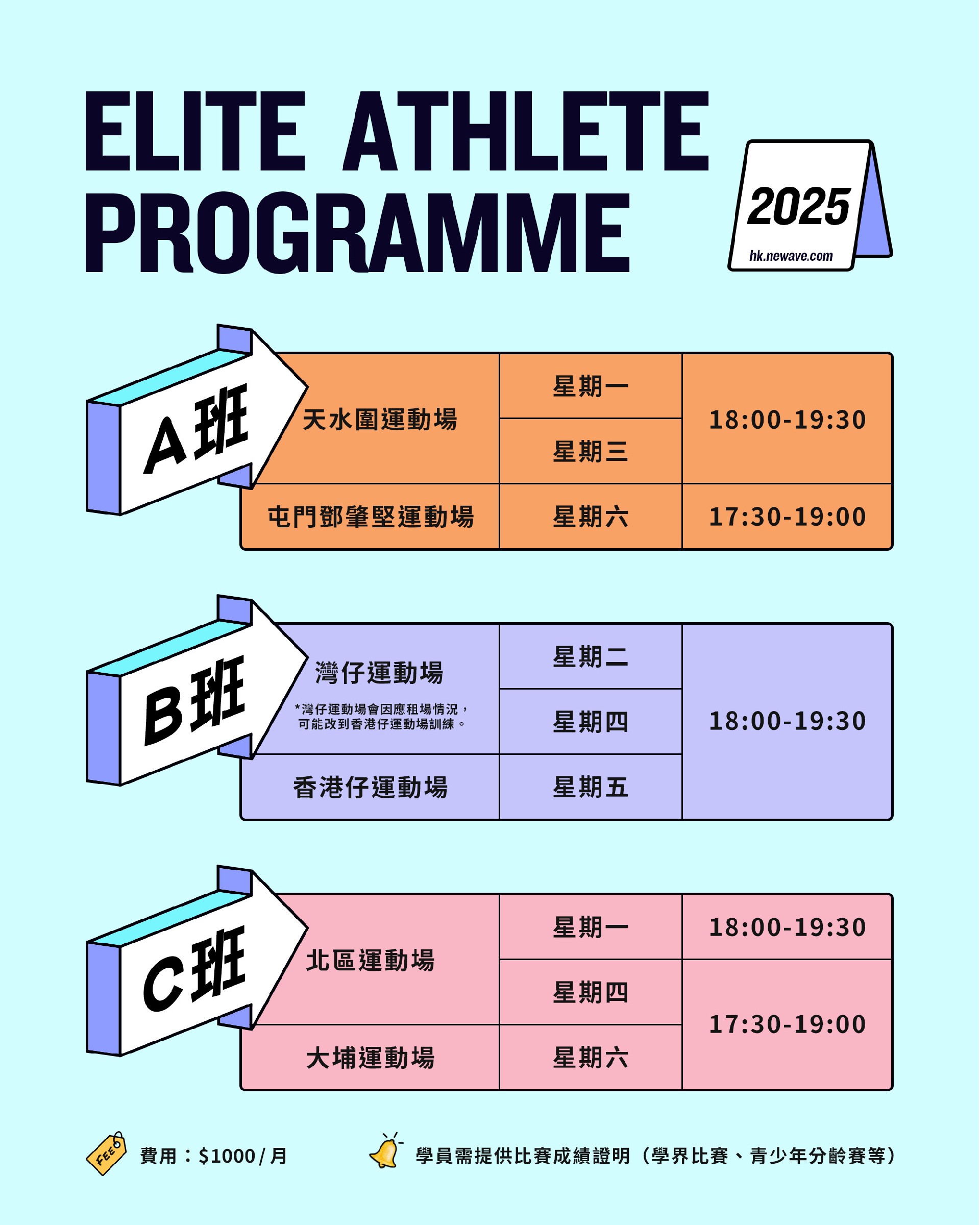 學員報名參加該訓練計劃需提供比賽成績證明(學界比賽、青少年分齡賽等)。